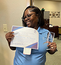Her director says, “Doris displays the heart of a servant leader every day. She provides beautiful, loving care to her residents and goes the extra mile in caring for her teammates. She routinely finds and created little projects to better the work environment. A kind and loving caregiver with a dedicated work ethic.”